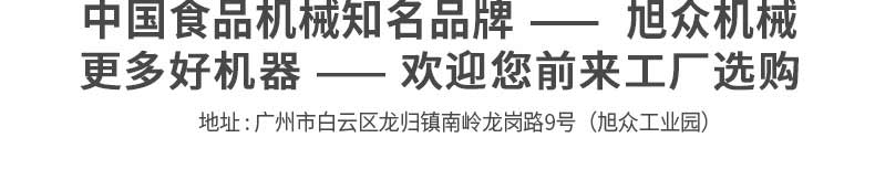 廣州旭眾食品機(jī)械有限公司是一家集科研開發(fā),生產(chǎn)設(shè)計(jì),營銷服務(wù)為一體的現(xiàn)代化生產(chǎn)企業(yè)?,F(xiàn)代化生產(chǎn)車間,精湛制造技術(shù),所產(chǎn)機(jī)械歷經(jīng)市場重重考驗(yàn),不斷贏得海內(nèi)外客戶的贊譽(yù)。