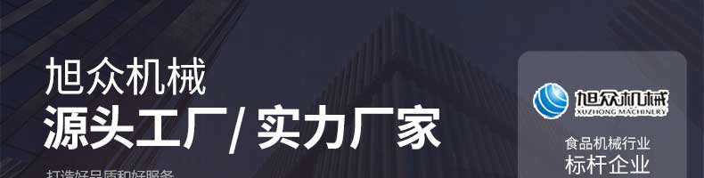 廣州旭眾食品機(jī)械有限公司是一家集科研開發(fā),生產(chǎn)設(shè)計(jì),營銷服務(wù)為一體的現(xiàn)代化生產(chǎn)企業(yè)?,F(xiàn)代化生產(chǎn)車間,精湛制造技術(shù),所產(chǎn)機(jī)械歷經(jīng)市場重重考驗(yàn),不斷贏得海內(nèi)外客戶的贊譽(yù)。