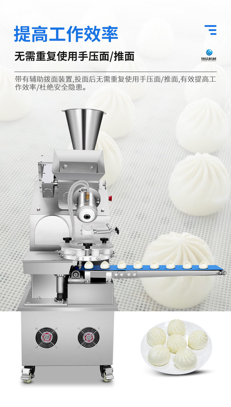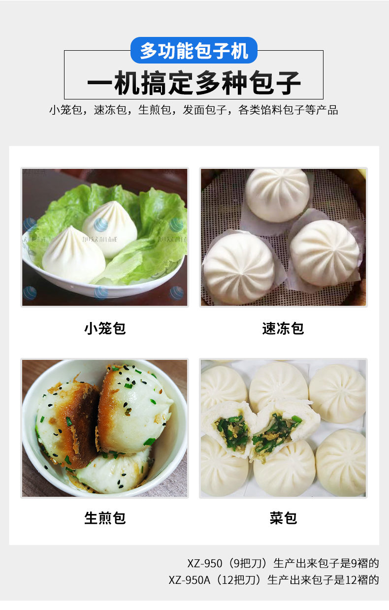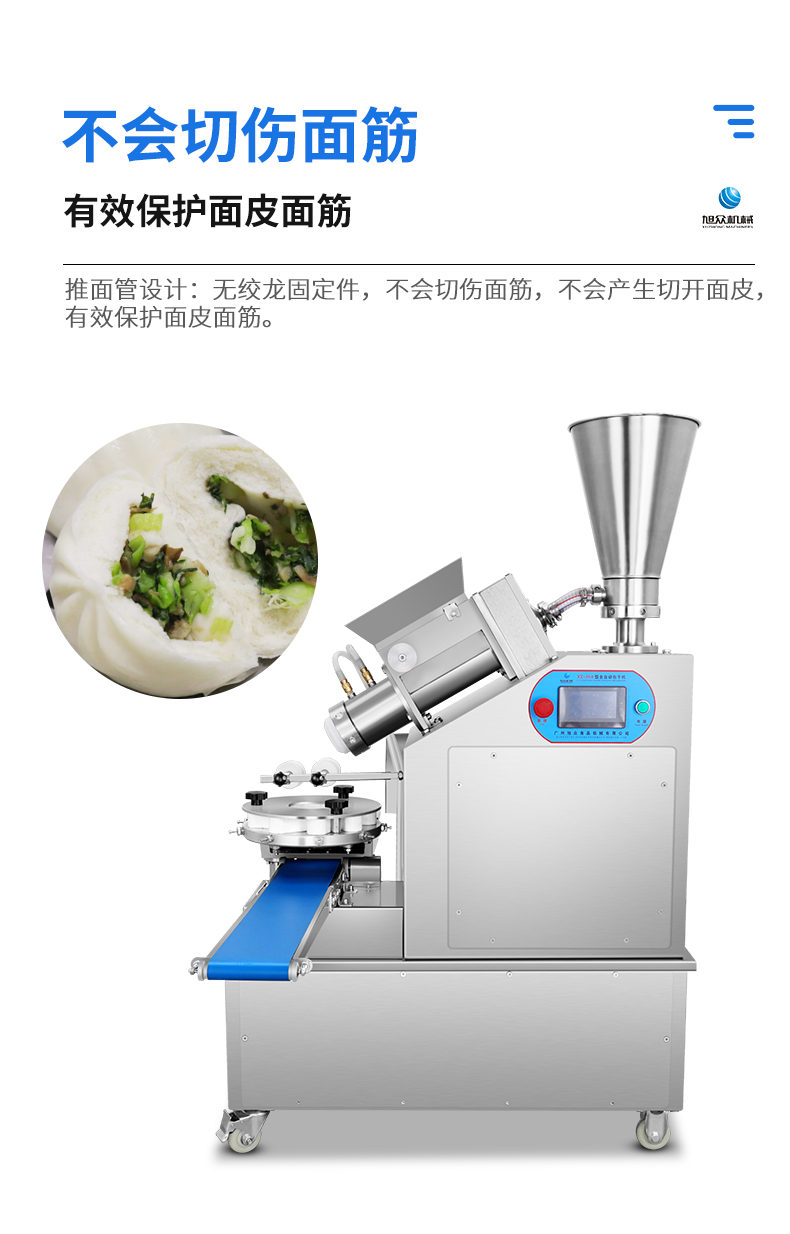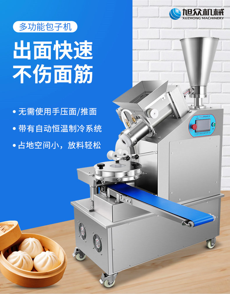 XZ-950型多功能包子機(jī),多功能包子機(jī),出面快速、不傷面筋。無需使用手壓面/推面,帶有自動恒溫制冷系統(tǒng),占地空間小,放料輕松。