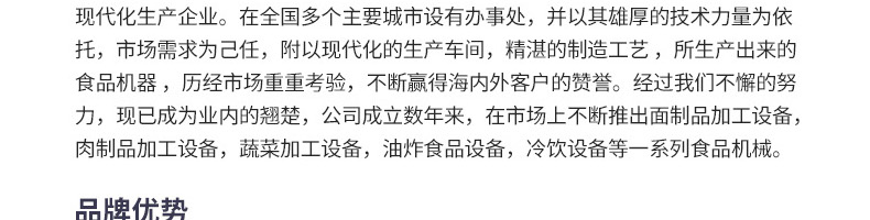 廣州旭眾食品機(jī)械有限公司是一家集科研開(kāi)發(fā),生產(chǎn)設(shè)計(jì),營(yíng)銷服務(wù)為一體的現(xiàn)代化生產(chǎn)企業(yè)?,F(xiàn)代化生產(chǎn)車間,精湛制造技術(shù),所產(chǎn)機(jī)械歷經(jīng)市場(chǎng)重重考驗(yàn),不斷贏得海內(nèi)外客戶的贊譽(yù)。