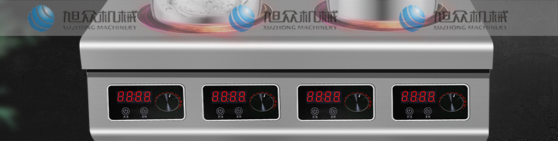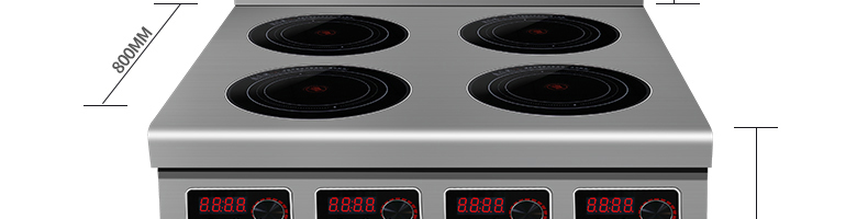 名稱四頭柜式電磁爐 電源220V 功率3.5KW×4 產(chǎn)量聯(lián)系銷售員 尺寸800×800×800+120M 重量聯(lián)系銷售員 規(guī)格頭數(shù):4頭 其他