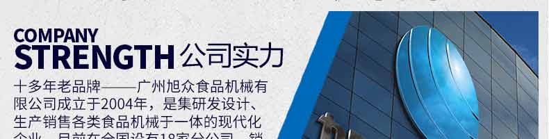廣州旭眾食品機(jī)械有限公司是一家集科研開發(fā),生產(chǎn)設(shè)計(jì),營(yíng)銷服務(wù)為一體的現(xiàn)代化生產(chǎn)企業(yè)。現(xiàn)代化生產(chǎn)車間,精湛制造技術(shù),所產(chǎn)機(jī)械歷經(jīng)市場(chǎng)重重考驗(yàn),不斷贏得海內(nèi)外客戶的贊譽(yù)。