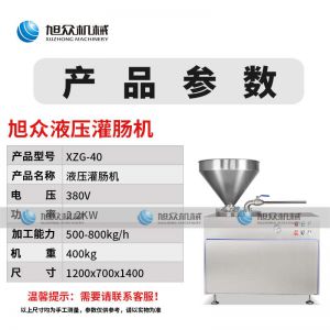名稱XZG-40液壓灌腸機 電源380V 功率2.2KW 產量500800kg/h 尺寸1200X700X1400m 重量400kg 規(guī)格聯系銷售員 其他