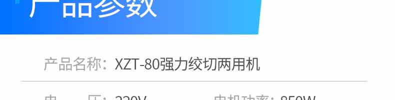 名稱XZT-80強(qiáng)力絞切機(jī) 電源220V 功率850W 產(chǎn)量 尺寸320*340*320mm 重量40kg 規(guī)格 其他額定頻率:50hz;額定電流:6.24A