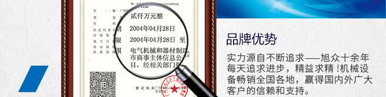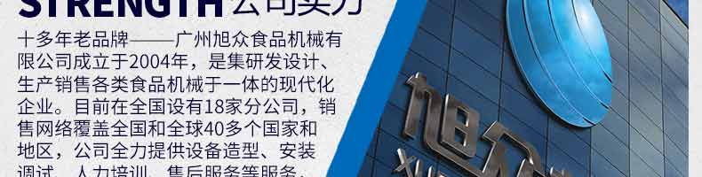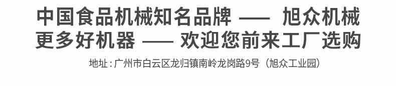 廣州旭眾食品機(jī)械有限公司是一家集科研開發(fā),生產(chǎn)設(shè)計(jì),營銷服務(wù)為一體的現(xiàn)代化生產(chǎn)企業(yè)。現(xiàn)代化生產(chǎn)車間,精湛制造技術(shù),所產(chǎn)機(jī)械歷經(jīng)市場重重考驗(yàn),不斷贏得海內(nèi)外客戶的贊譽(yù)。