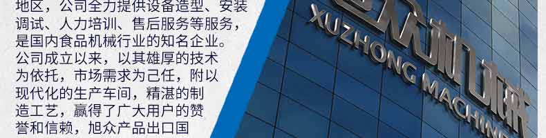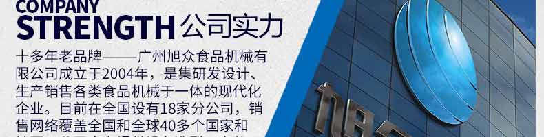 廣州旭眾食品機(jī)械有限公司是一家集科研開發(fā),生產(chǎn)設(shè)計(jì),營銷服務(wù)為一體的現(xiàn)代化生產(chǎn)企業(yè)?,F(xiàn)代化生產(chǎn)車間,精湛制造技術(shù),所產(chǎn)機(jī)械歷經(jīng)市場(chǎng)重重考驗(yàn),不斷贏得海內(nèi)外客戶的贊譽(yù)。