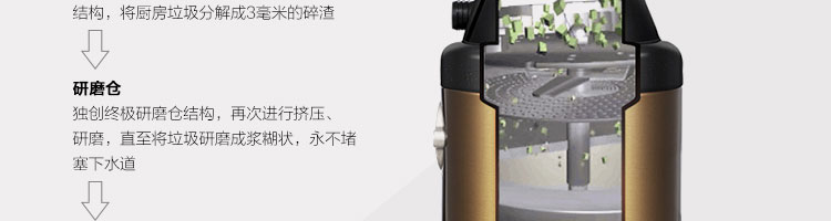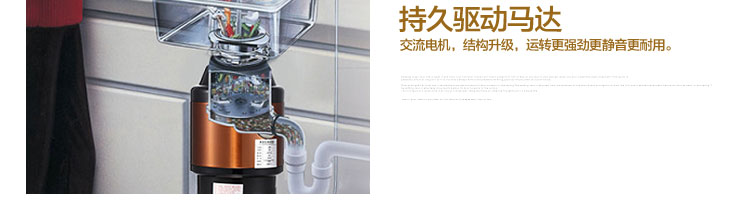 ACLQ56-廚房垃圾處理器,該機(jī)器是靠?jī)?nèi)部結(jié)構(gòu)、零件組合達(dá)到處理垃圾的效果,通過碾、壓、擠、磨等系統(tǒng)的處理,在十幾秒內(nèi)安全將食物垃圾處理成小于3毫米的顆粒,隨著水流排入下水道,使用十分安全。