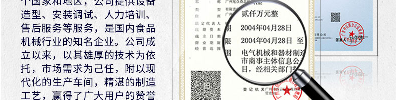 廣州旭眾食品機(jī)械有限公司是一家集科研開(kāi)發(fā),生產(chǎn)設(shè)計(jì),營(yíng)銷(xiāo)服務(wù)為一體的現(xiàn)代化生產(chǎn)企業(yè)?,F(xiàn)代化生產(chǎn)車(chē)間,精湛制造技術(shù),所產(chǎn)機(jī)械歷經(jīng)市場(chǎng)重重考驗(yàn),不斷贏得海內(nèi)外客戶的贊譽(yù)。