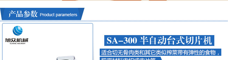 臺式半自動切片機,適合切無骨肉類和其他類似榨菜帶有彈性的食物,把原材料肉切成肉片,并可自動成卷狀。可切牛肉片、羊肉片等