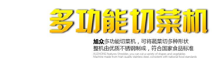 作者:旭眾機(jī)械發(fā)布時(shí)間:2017-04-15 11:42查看數(shù):您當(dāng)前的位置:首頁>>產(chǎn)品展示>>蔬菜加工系列>>切絲切片切丁機(jī)