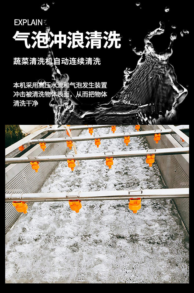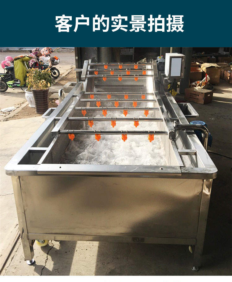 農(nóng)產(chǎn)品設(shè)備多功能蔬果凈菜流水清洗線洗菜機,適用范圍廣泛節(jié)省大量時間的同時,還為您節(jié)約了成本。堅固耐用整機采用質(zhì)不銹鋼,滋湃大動力源于好。搭載變頻電機,強勁動力穩(wěn)定輸出噪音低,好的動力源于好芯。