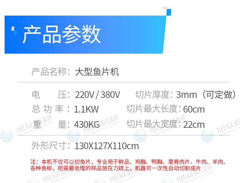 名稱大型切魚片機(自動進料) 電源380V 功率2.1kw 產(chǎn)量1噸以上/日 尺寸130*127*110cm 重量430kg 規(guī)格切片厚度3毫米(可定制) 其他伺服電機,可編程邏輯控制器
